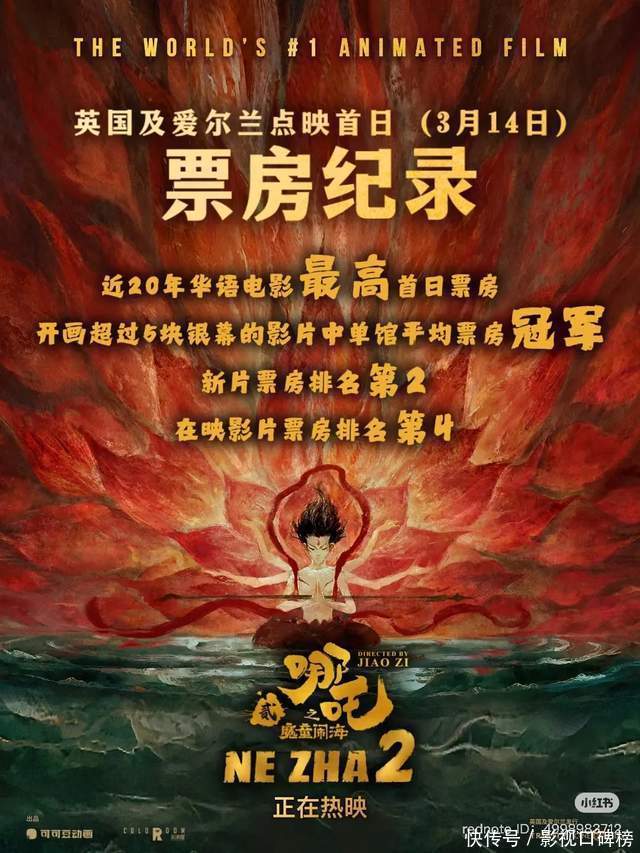 让我们再把视野放远,冲出亚洲走向世界,英国现时亦然在点映阶段,但已成单日票房榜第四,创下近20年华语电影最高首日票房。此外,这是伦敦第一次在IMAX影院内部放华语片。英国的刊行商挺过劲,硬生生把咱电影海报挂在了登上伦敦市中心 Odeon Leicester Square 大屏,排面是给得足足的。