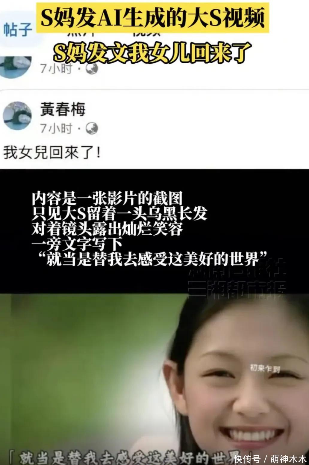据悉,由AI生成的大S视频里,只见大S留着一头乌黑长发,对着镜头知道灿烂笑貌,一旁翰墨写下:“就当是替我去感受这好意思好的宇宙”。天然该影片很是标注是“AI生成”,不外S妈如故“触景伤心”,缅怀喊出“我儿子回归了”、“宝贝回家”。