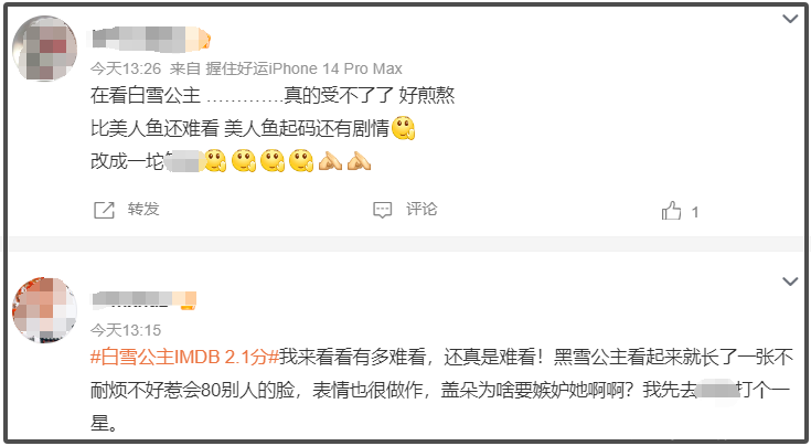 围不雅到这不难发现,哪怕不提《白雪公主》肤色正确争议,不聊白雪公主怎么酿成了棕雪公主,单纯从评价一部电影角度登程,《白雪公主》都是差评如潮,纵不雅电影首日口碑,确凿统共脚色都有差评,剧情、殊效也衰败亮点,还有“盗用”其他迪士尼公主电影情节的嫌疑,真等于一统共这个词一无是处。