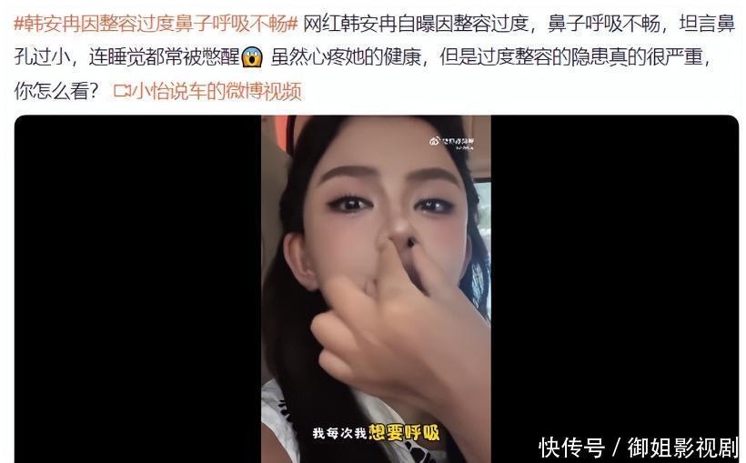 8次创伤蓄积下来,韩安冉呼吸都出现了问题,因为切鼻手术导致鼻孔变小,韩安冉就连寝息的时间,都可能因为呼吸可贵而憋醒。
