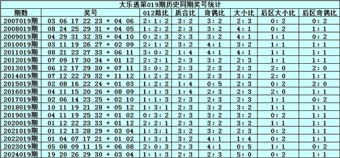 体彩大乐透第2025019期历史同时开奖号码分析: