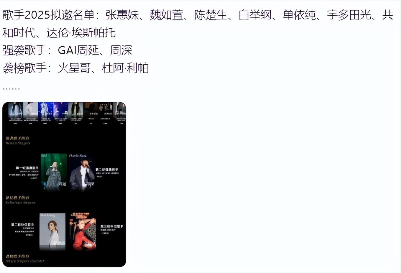 莆田安福家园 《歌手2025》不筹谋直播了?网上又传出拟邀声势,如实很渊博