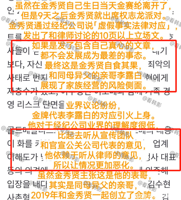 但一直到当今,金秀贤已经拒不谈歉,韩媒指出之是以事情发展到当今如斯不能控的地步,和他背后的智囊——同母异父的亲哥李沙朗谈判,2020年1月,金秀贤与表哥(实则亲哥)李沙朗创立经纪公司,并于同天沿路签下了徐睿知和金赛纶,两位绯闻女友同天签约,况且王人在合约存续技巧出现丑闻,真实不要太巧。