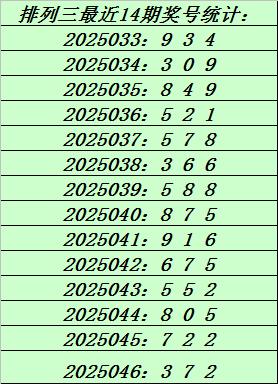 上期纪念:枚举三第2025046期奖号:372。和值12,跨度5。