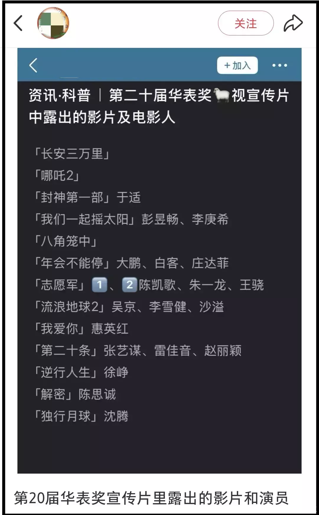 凭据网友整理名单,在央视电影频谈华表奖宣传片出镜的明星和导演共有19位,诚然他们主演的电影有的不在华表奖评比期,但对比过往获奖名单,每每在宣传片中出镜的明星更或者率过问提名名单。