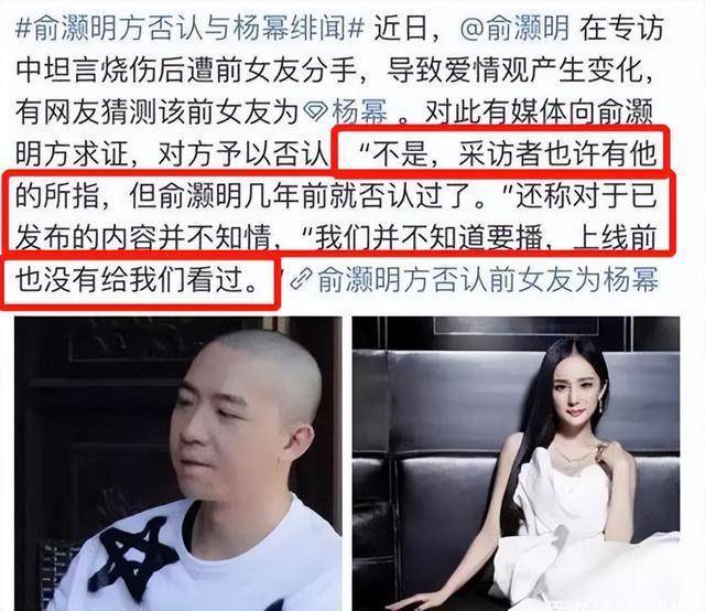 俞灏明方的责任主说念主员更是默示,易立竞节目播出上线前,并莫得奉告他们,也没给看过样片,约略其时主理东说念倡导有所指,但俞灏明从未说过阿谁前女友是杨幂。