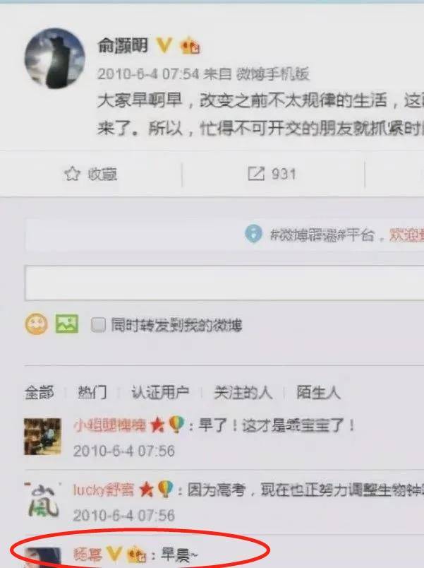 第一张像片,很显著是俞灏明一又友圈的发文,发布时分是早上九点十九,截图是晚上九点半,臆想是思了又思,才在微博进行了告示,果然太可人了。