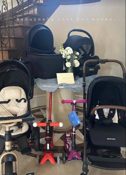 另外谢婷婷还共享了家东谈主给宝贝准备的婴儿车,各式各种的婴儿车一又友们仍是投递,可能孩子用不上,但谢婷婷忍不住共享一又友们的这一份情意。