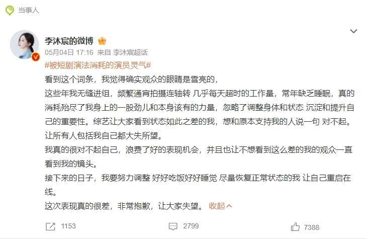 莆田安福家园 李沐宸发文为演技欠安谈歉,称短剧会消费灵气!