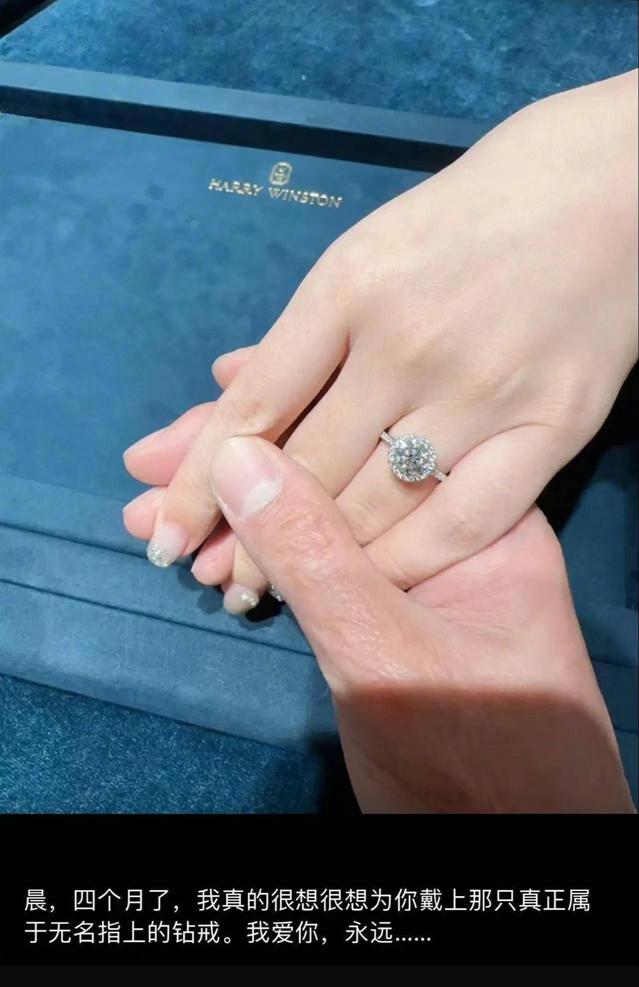 像片中俞灏明的手还有当年被烧的脚迹,而女方的手上则戴着鸽子大的钻戒,底下还配了文:晨,四个月了,很思给你戴上的确属于无名指的钻戒,爱你恒久……