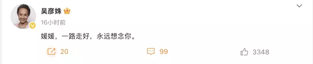 老戏骨吴彦姝也发文吊祭,仅仅网友没念念到,这位老戏骨和朱媛媛也有错乱,网友感动之余,也但愿老东说念主家简略防备身体。