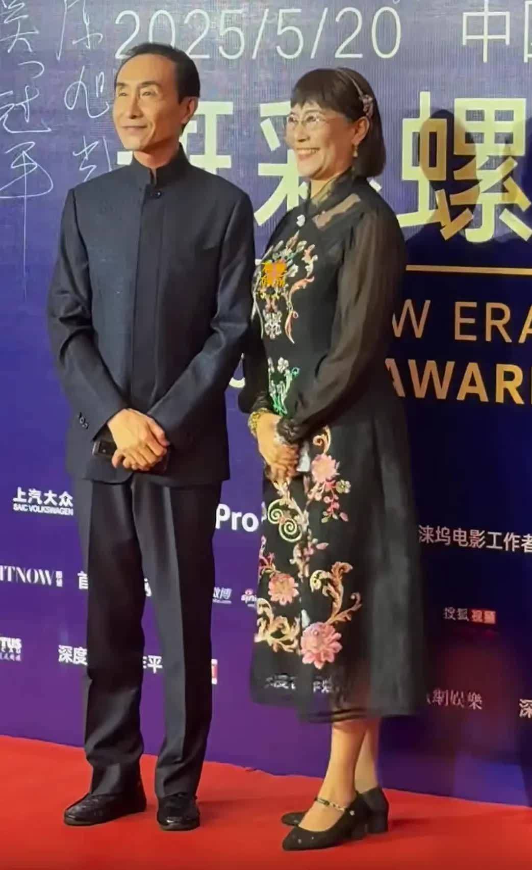 巩汉林和内助金珠齐穿了玄色战胜,巩汉林的中山装突显了他老艺术家的风姿,金珠的造型则跟好多宠爱唱歌、舞蹈、拍照的中年大姨通常拉风。