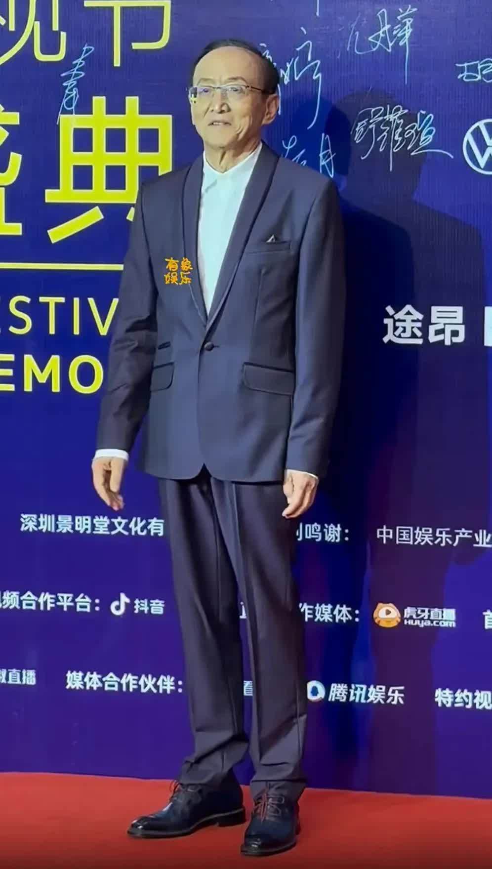 舒耀瑄穿了一套深蓝色西服,69岁的他身体偏瘦、纪律强壮,看起来依然精神鼓励。