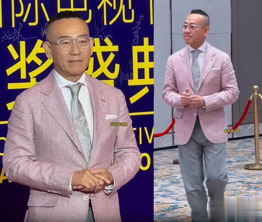 林保怡穿的是粉色格纹西装外衣搭配灰色西装裤,生图里可以看到他脸上也曾有比拟显著的岁月陈迹,但五官变化不大。