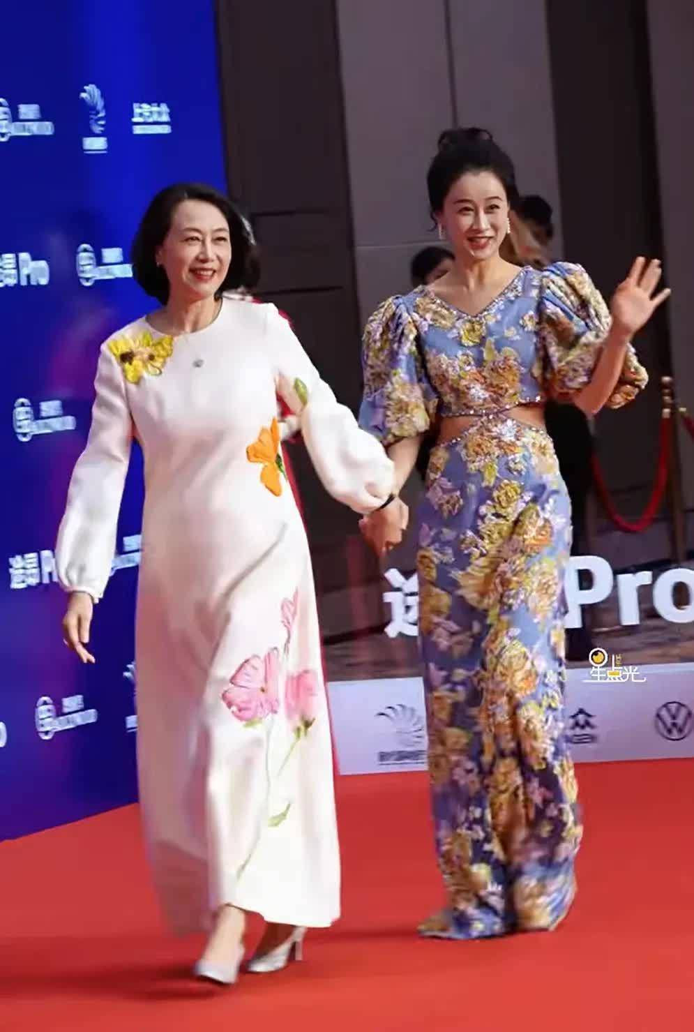 吴玉芳和张晶晶的战胜齐有花朵元素,穿了刺绣白裙的吴玉芳优雅中带着活力,张晶晶的蓝色露腰花朵长裙突显了纤瘦的腰围。两东谈主在红毯上被执拍到的生图,给东谈主一种很有生命力的嗅觉。