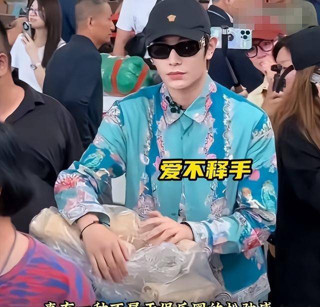 各式大牌加身,很有顶流范了,便是手上的一袋丝瓜瓤,让他的形象有点接地气了。
