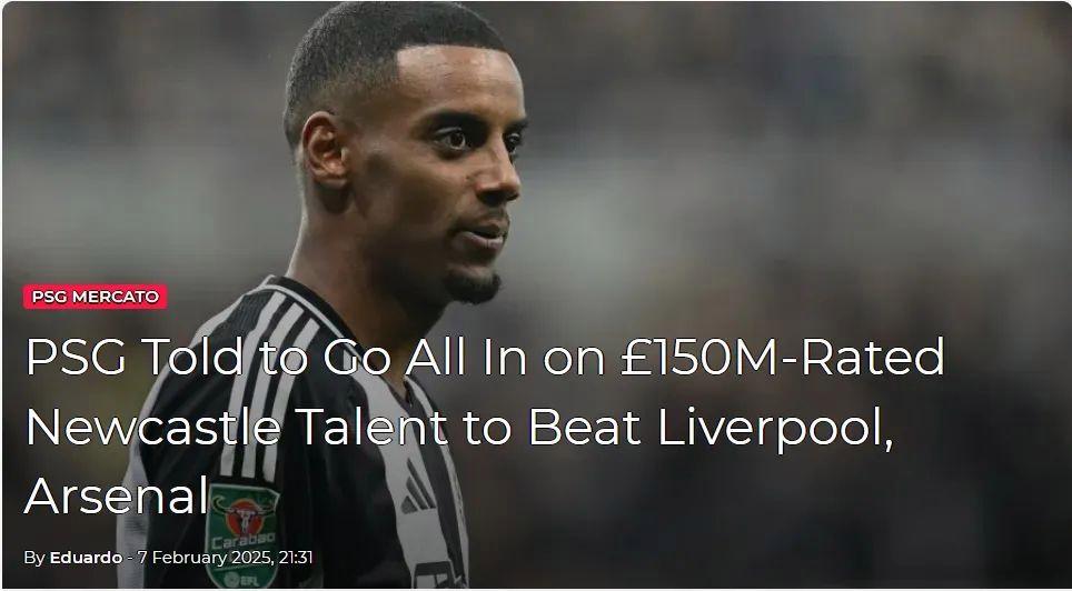 RMC记者DR音讯,巴黎对纽卡斯尔前卫伊萨克展示出了横蛮的艳羡,报谈称他们准备在今夏提供贡卡洛-拉莫斯、穆阿尼和阿森西奥来交换伊萨克,法甲权门以致不摒弃把李刚仁加入到往复中。