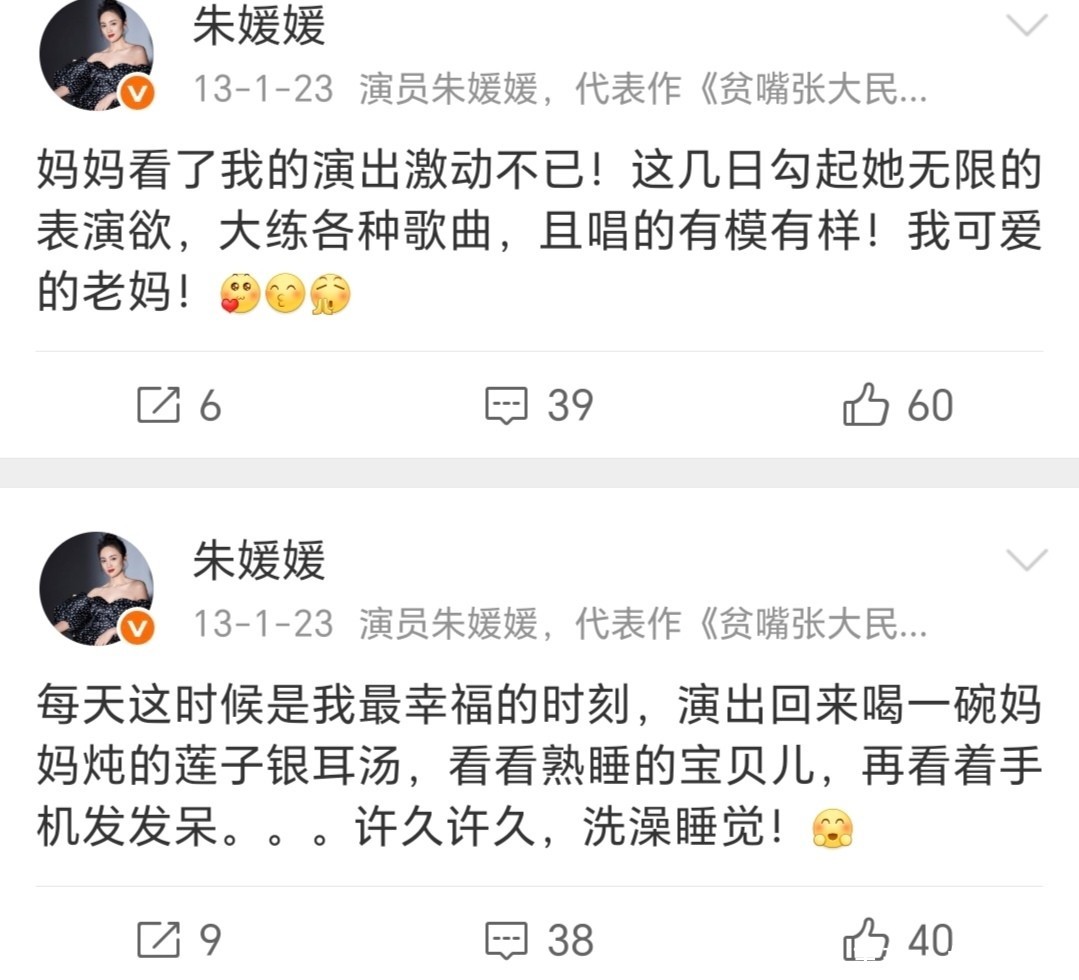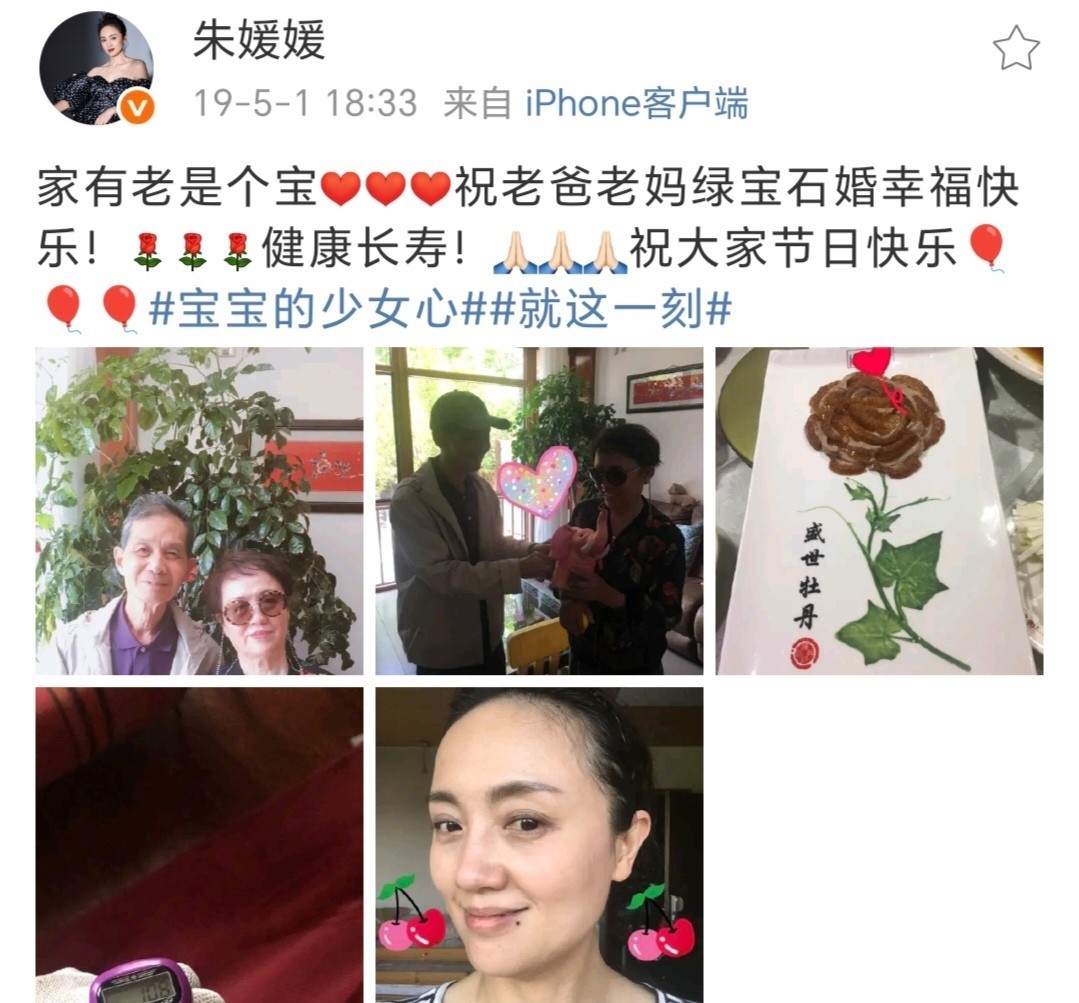 在朱媛媛的外交账号中则记载了好多和父母议论的幸福普通。