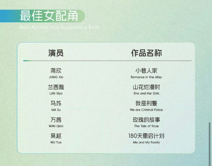 莆田安福家园 “白玉兰”入围名单公布,蒋欣入围“最好女配”,也算不测捡漏了
