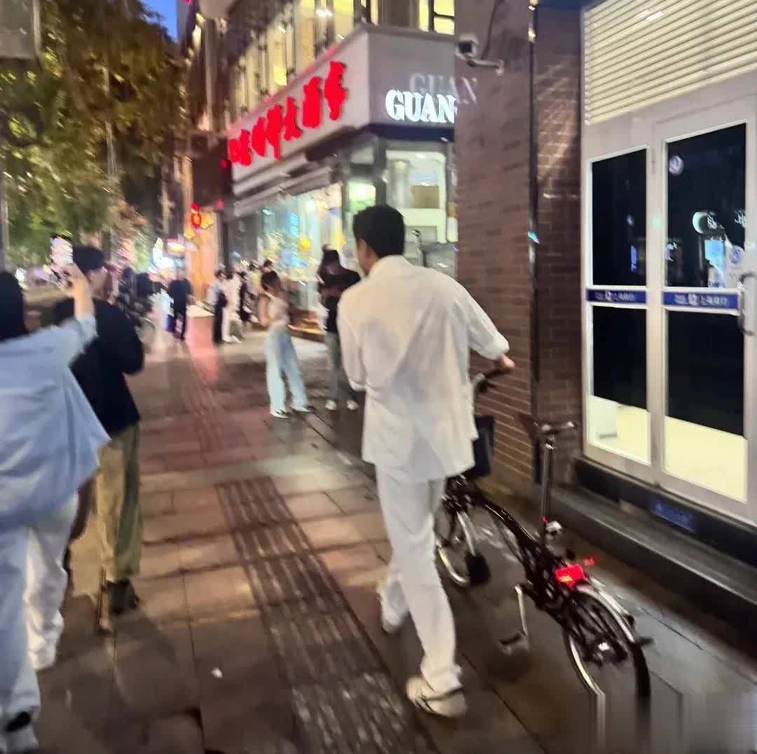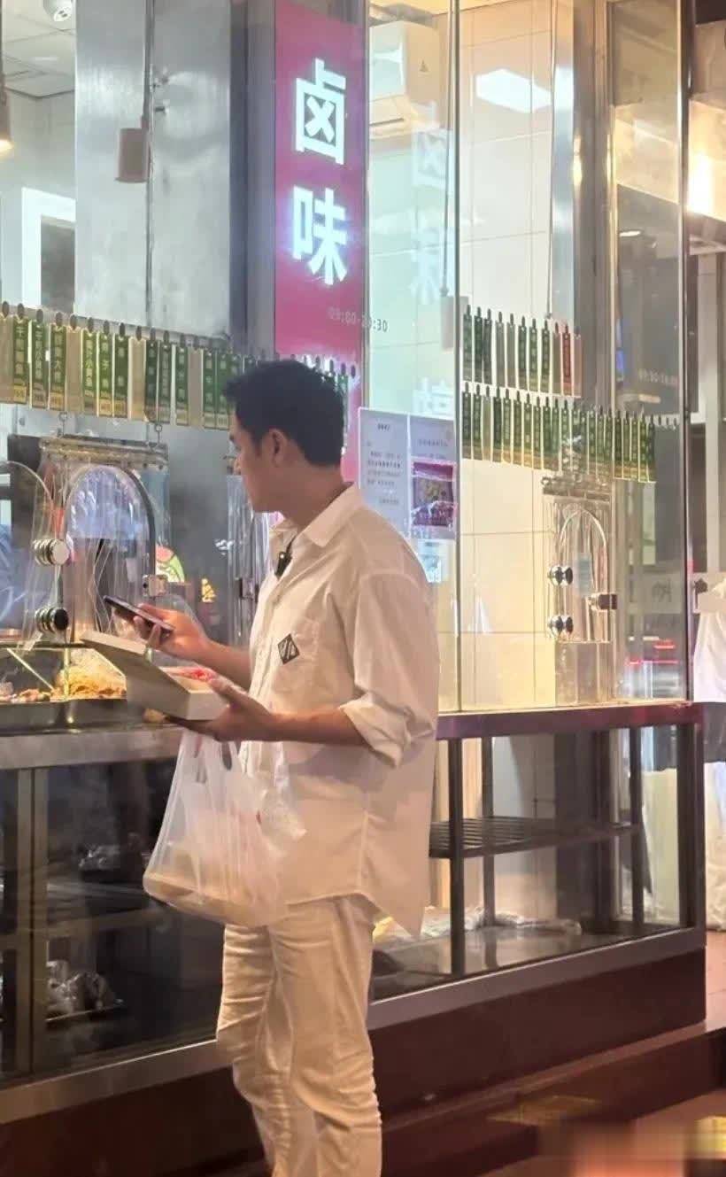 明星一稔白色衬衣和白色空闲裤,孤单白的打扮看起来很领悟,莫得中年男性的浓重,即是合照时脸看着有点肿,有少许姨味。买好卤味以后,提着卤味的明说念,骑着自行车就走了,看起来很接地气。