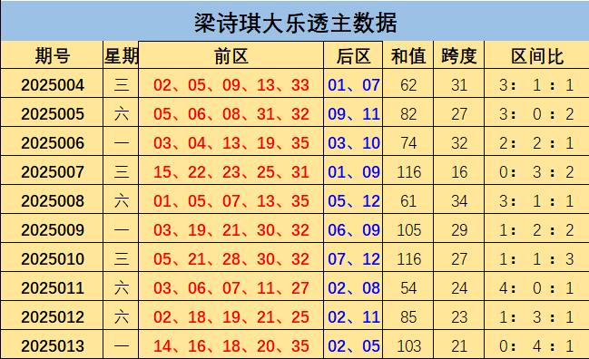 莆田安福家园 014期梁诗琪大乐透推测奖号:跨度参考