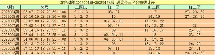 双色球第2025013期奖号为:04 14 16 23 24 30 + 14,红球三区比为1:2:3。