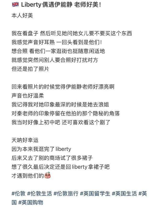 有一位网友晒出在巴黎逛街偶遇伊能静与秦昊,还有米粒一皆逛街的画面。