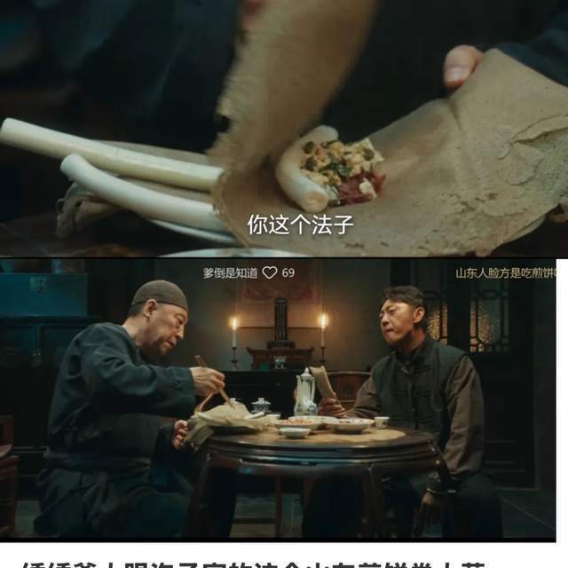 这从侧面阐述的一件事,那就是关于山东东谈主而言,煎饼是很焦躁的东西,婚丧嫁娶的阵势都少不了它。那就更不要说,看剧中东谈主如何名堂吃煎饼了。