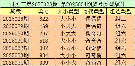 成列三第2025034期总结:奖号309,奇偶比2:1,大小比1:2,和值12,类型:组六。