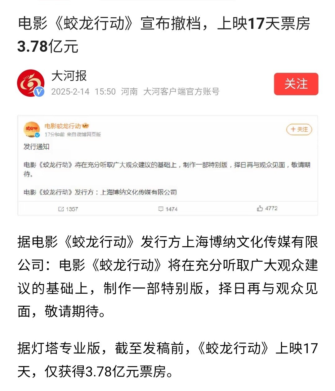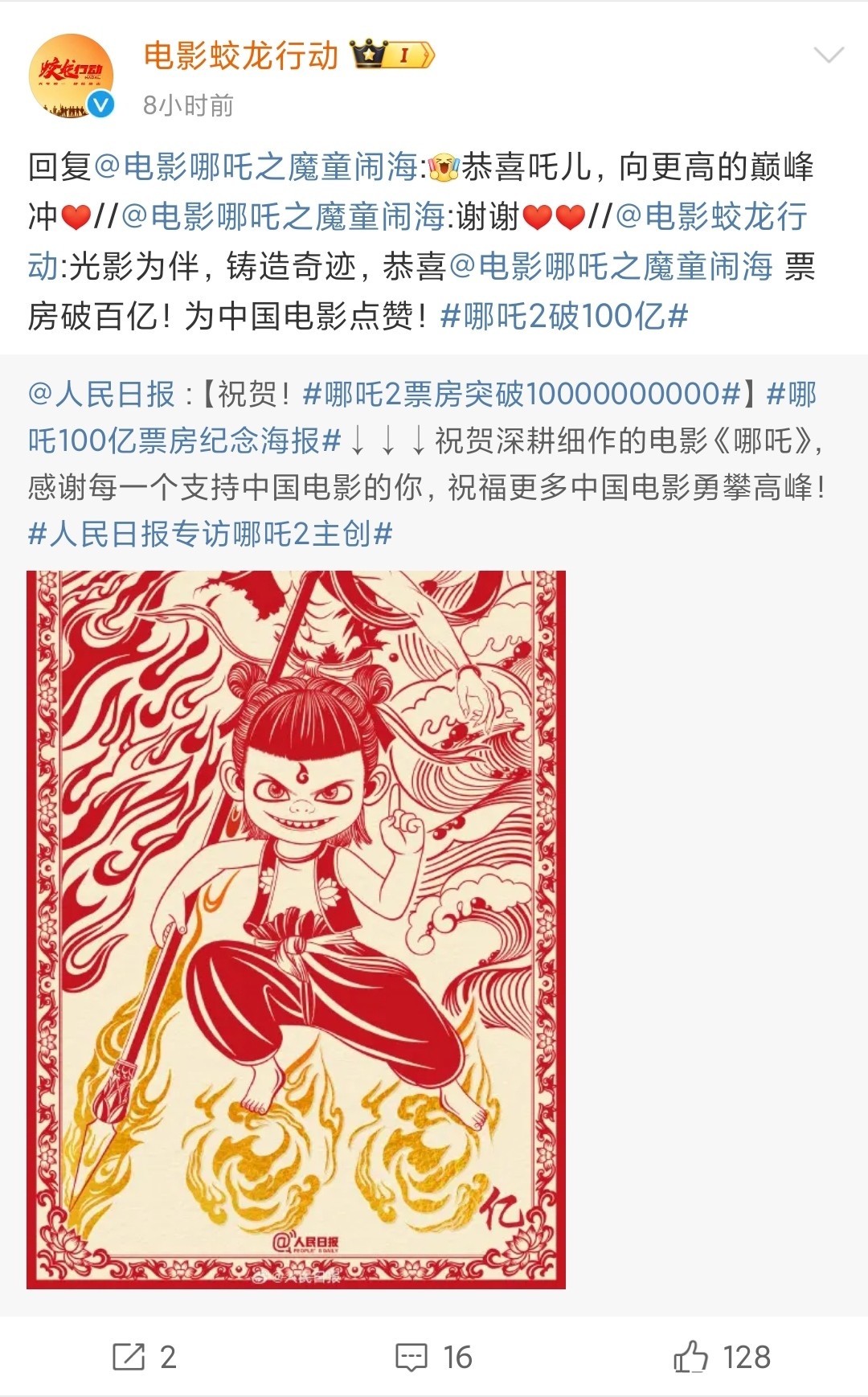 在《哪吒2》票房破百亿的技艺,《蛟龙手脚》官微发了一条祈福信息,在那时,他们心里应该是满满的防御吧。
