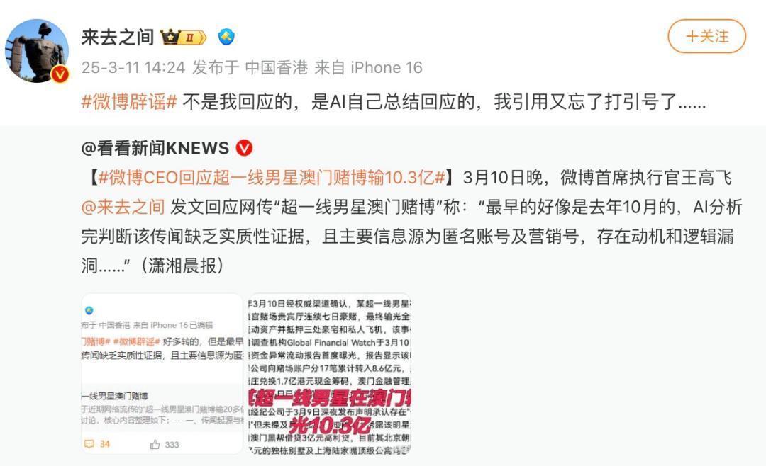 其实这个外传早在昨年10月就出现过,那时传的是“Z姓男顶流”输了20多亿,现时换个说法又出来煽风点燃,要道音书还王人来自匿名账号和营销号,信得过度太低了。