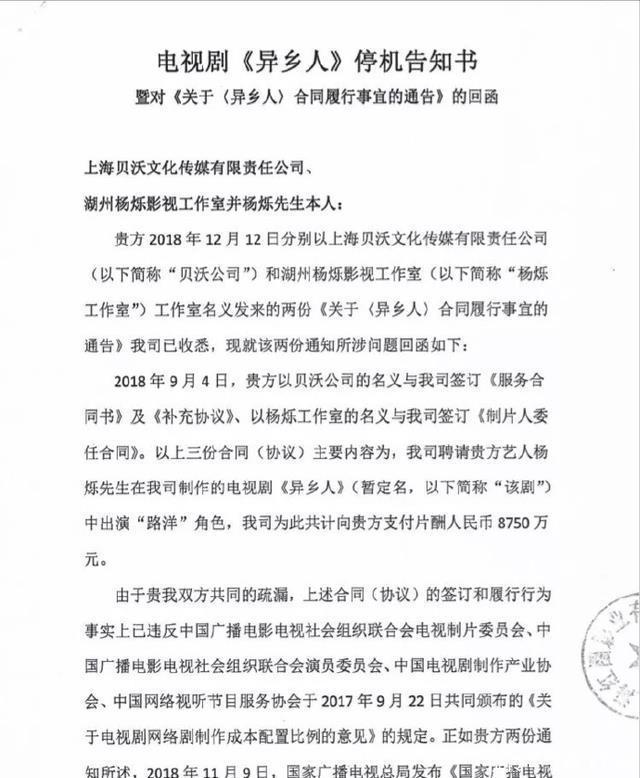 可能是因为限薪令波及的片酬整改关联,致使在剧组的停机公告里也点明了, 其时他高达8750万元的片酬似乎违犯了限定。