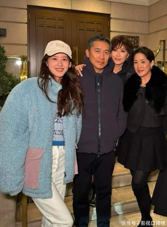 3月24日在网罗上晒出,章泽天与梁朝伟爱妻俩全部聚餐的合照。章泽天衣服浅蓝色厚厚的外衣,脸上挂着甜好意思笑脸。