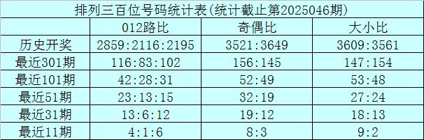 百位分析:该位上期奖号为3,出现0路、奇数、小 号,在前11期奖号,该位012路比为4:1:6,1路号码最冷,当今012路号码遗漏期数辩别为0、1和2,近期百位正式2路号码走热。