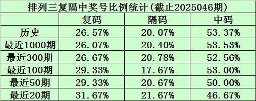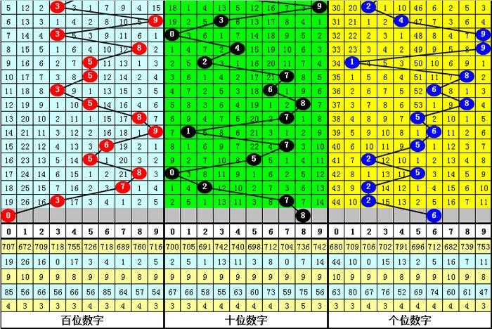 百位分析:百位最近9期出号:3-5-8-9-6-5-8-7-3,奖号大小比为7:2,奇偶比为6:3,012路比为4:1:4,本期百位参考号码046。