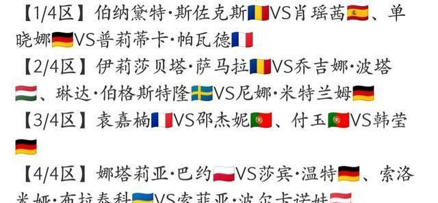 斯佐科斯身处竞争强烈的上半区,这里累积了才华横溢的法国新星帕瓦德和本领荣华的德国战将尼娜·米特兰姆。她的征途首战,就是对抗来自西班牙的英勇战将肖瑶茜。在这片妙手云集的赛场上,斯佐科斯面对着严峻的挑战。帕瓦德以其出色的进展眩惑了浩荡见解,而米特兰姆的实力相通辞谢小觑。首轮的敌手肖瑶茜,相通是一位本领深湛的选手。斯佐科斯深知,每一场比赛齐将是一场硬仗,她必须任重道远,才气在这片英雄如林的战场上脱颖而出。