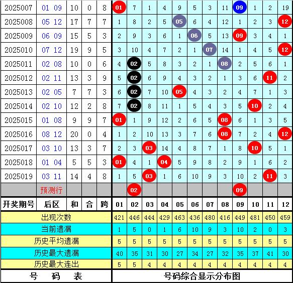 其中,后区奇偶比为24:16,大小比为21:19,012路比为10:17:13,本期后区金胆参考02。