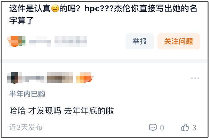 周杰伦潮牌出带有“HPC”字母的服装也激发了粉丝的质疑,有粉丝诧异那字母胪列等于周杰伦平直写侯佩岑名字,其他粉丝还玩笑辱弄称货色旧年年底就出了。