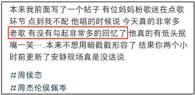 演唱会扬弃后,周杰伦又在社媒上cue了《陶然》,而《陶然》曾是侯佩岑最爱的歌曲,怎么不是一种call back。