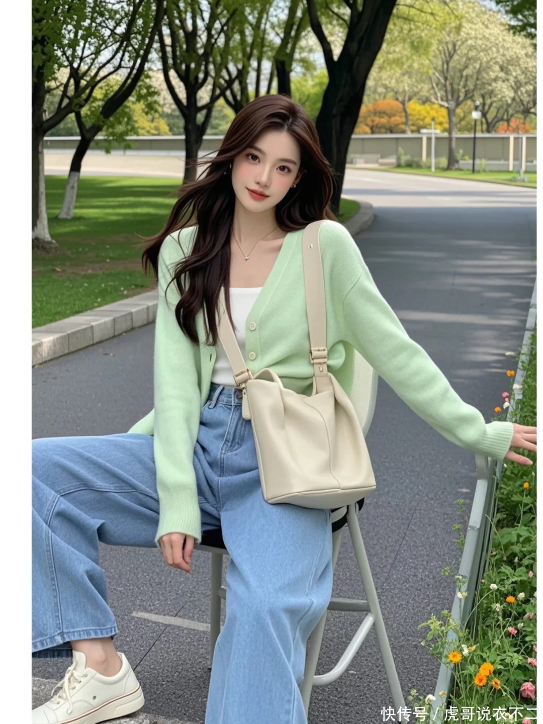 念念要穿出"生东谈主勿近"的高档感?试试薄荷绿+白色的组合。开衫选带灰调的莫兰迪色系,内搭选拔白色小吊带,下身搭配垂感皆备的牛仔阔腿裤,有工夫越是从简越显高档。