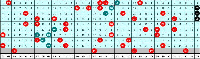 前区1路号码:上期开出2个1路前区号码:01、22,上期走温。最近10期开出19个1路前区号码,其中小 号1路前区号码证据活跃,奇数1路前区号码热出,另外最近10期1路前区号码:04、13、34莫得出现。本期参考1路前区号码:07。