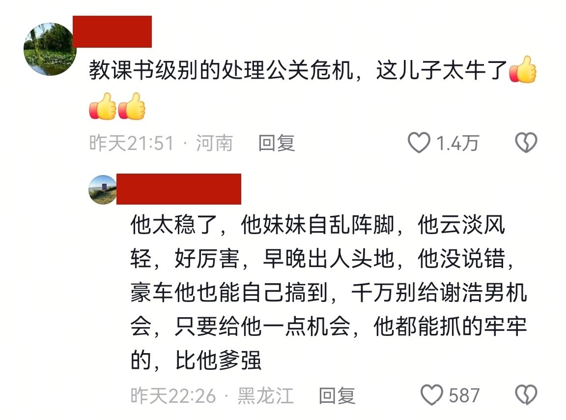 网友纷纷直言谢浩男的此次操作是教科书式危急公关。