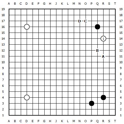 于是白1启动挂,黑棋插足了新的纠结,是A位B位的夹攻照旧C位D位守角。哪怕一王人之差,实战中都必须四平八稳。