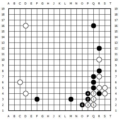 白1拐,先捞实地,黑2冲签订,白3打,5贴,黑6小尖巧手,白不可功。