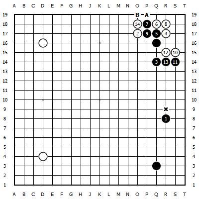 挂之后黑A拆是迷你中国流,这个气候是300多年前日本棋圣谈策首创,新布局期间商酌过,上世纪90年代末启动风行。倏得,暴力围棋期间出现了黑7退一步的拆,5和7之间的关系消弱,到底卖的是什么关子?