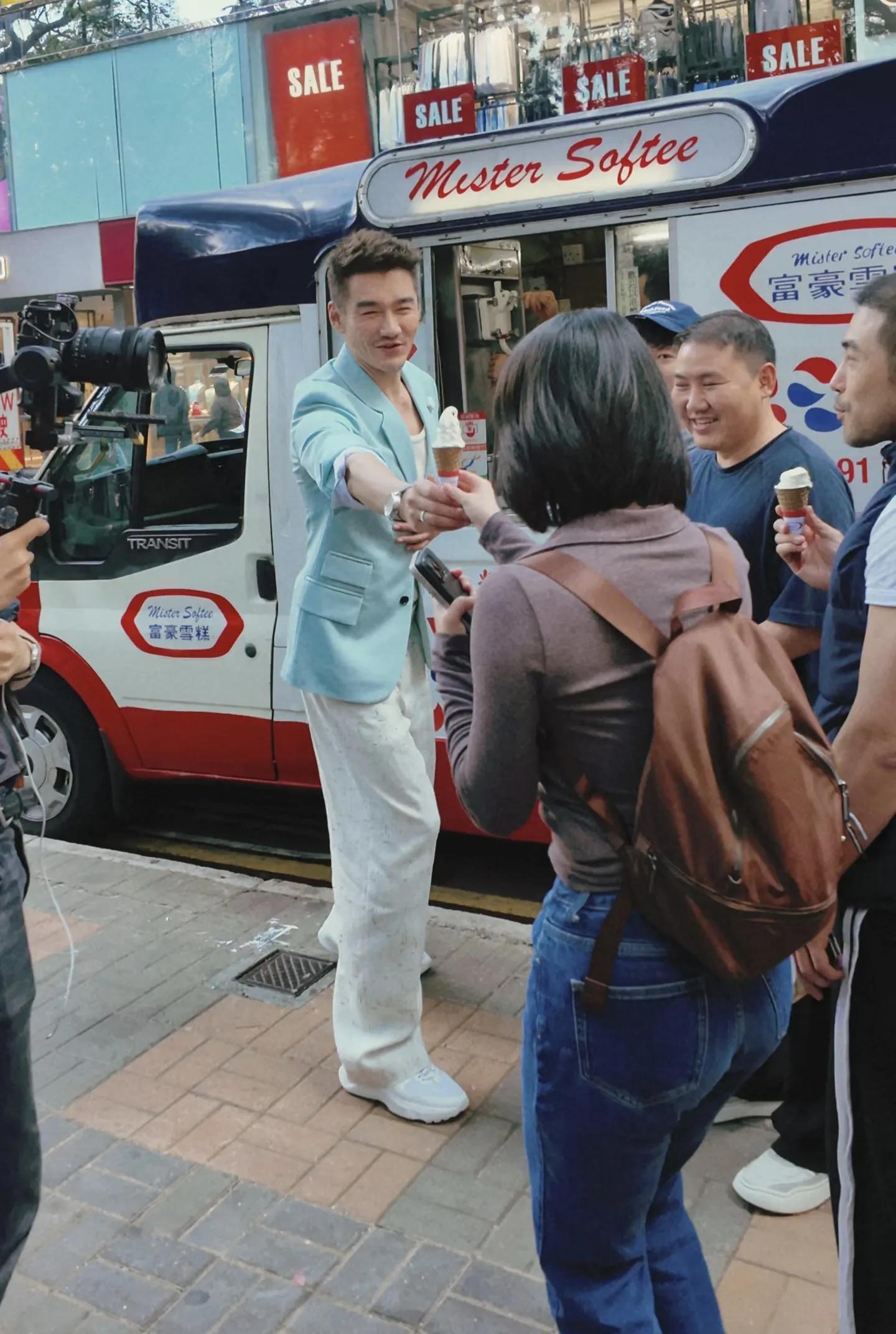 莆田安福相册 54岁胡兵现身香港穿衣有型,大方请女粉丝吃雪糕