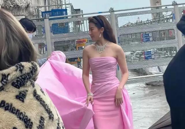 本来,动作今日,她果然相称斗胆的聘用了一件“物化芭比粉”的纯粉色礼裙。