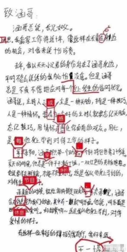 为展示伯仲情深,他便给老迈汪涵写了一封感谢信,字写的歪歪扭扭不说,信一共没若干字,单病句就出现了十几处,还有不少的错别字。