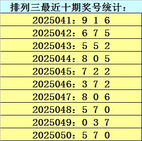 上期转头:摆设三第2025050期开奖号码为570,历史上组选出现37次,直选出现7次。