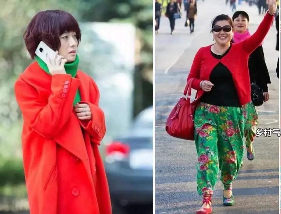 我们来看一下,雷同是红色的穿着,关联词穿出来的着力一丈差九尺,